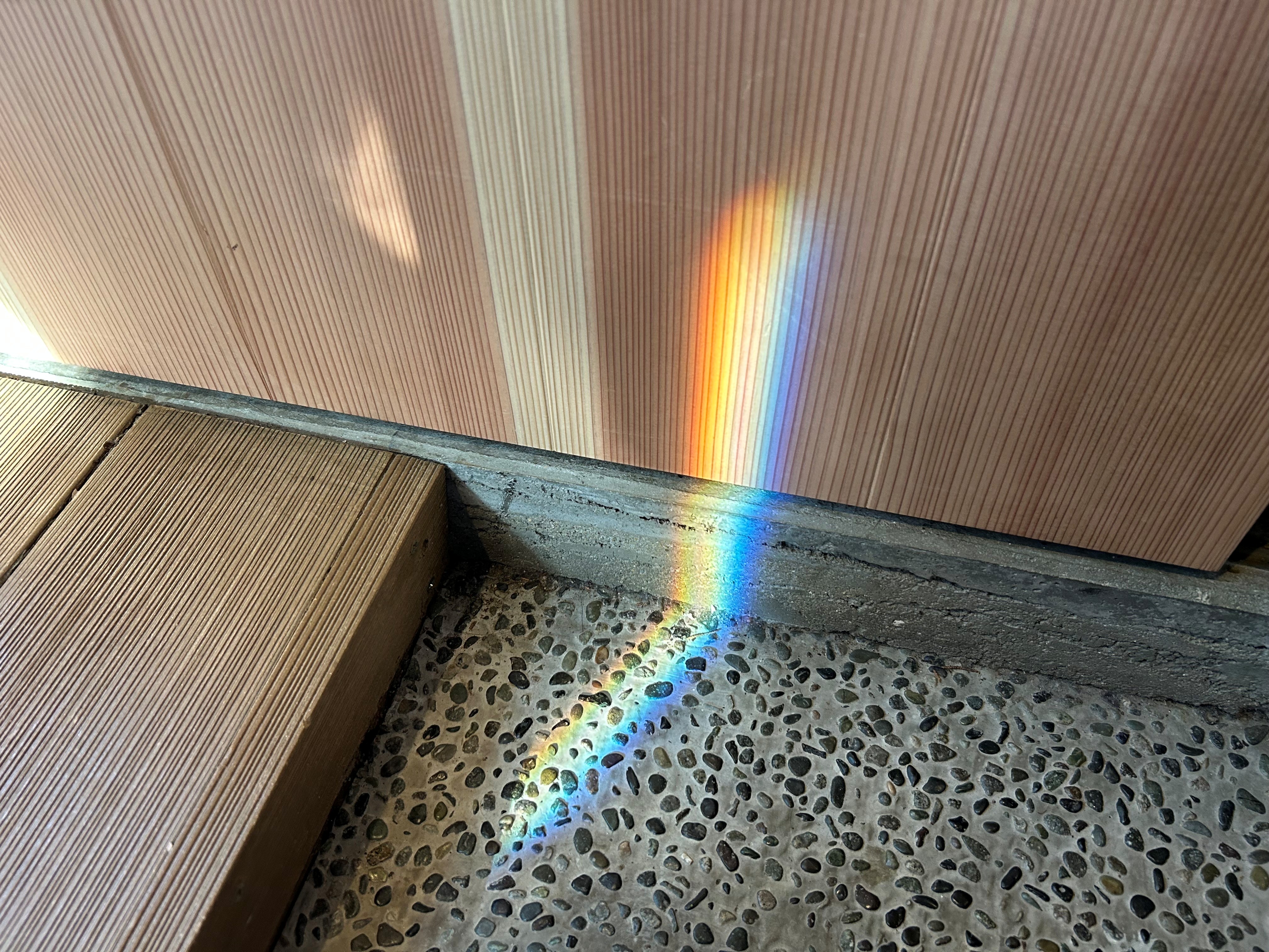 四番湯の清掃中、太陽と光の反射の影響なのか四番湯の脱衣所に虹が現れました!!🌈